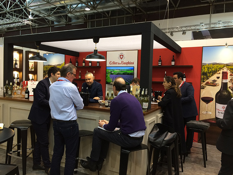 A cette occasion, nous avons pu accueillir nos clients et partenaires du monde entier dans le nouveau stand Cellier des Dauphins dont l’architecture et la décoration représentaient fièrement les valeurs de notre région sous la forme d’un Bar à Vins avec Patio provençal. Nos clients d’Amérique du Nord (Etats-Unis, Canada), du Royaume-Uni, de Scandinavie, du Bénélux, des pays de l’Est, et d’Allemagne bien sûr, ont répondu présents à ce rendez-vous incontournable. Des partenaires d’autres pays ou zones géographiques sont également venu nous rencontrer (Afrique du Sud, Ile de la Réunion, Turquie, Australie, Corée, Vietnam, etc.).
